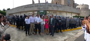 Más de 100 policías antimotines rodearon las instalaciones de la Fiscalía General del Estado (FGE), a unos minutos de que el titular fuera separado temporalmente del cargo por no cumplir con la certificación para el cargo.