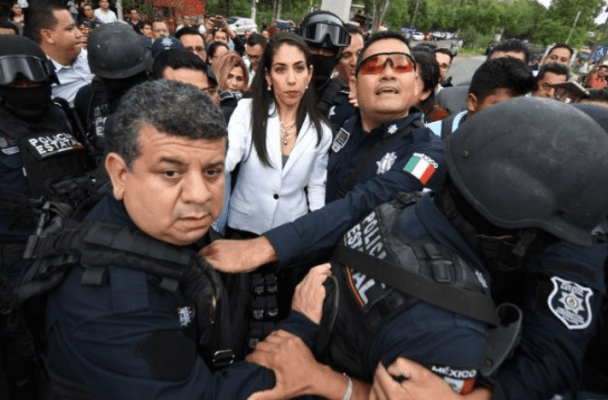 En medio cinco diputados del PAN llegaron hasta la entrada para intentar entrar a las instalaciones, al menos diez veces formaron vallas con su cuerpo para burlar el cerco policiaco, pero no pudieron lograrlo: «Esto es un golpe de estado, es una brutalidad», gritaban los diputados.