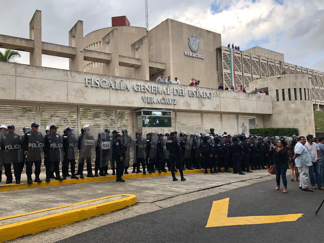 Más de 100 policías antimotines rodearon las instalaciones de la Fiscalía General del Estado (FGE), a unos minutos de que el titular fuera separado temporalmente del cargo por no cumplir con la certificación para el cargo.