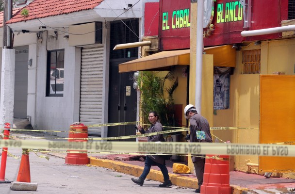 Peritos de la Fiscalía General de la República continúan con el levantamiento de indicios en el bar Caballo Blanco, luego del ataque registrado el 26 de agosto