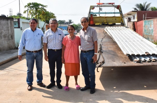 Por lo anterior, este viernes se trasladaron al domicilio ubicado en la colonia Brisas del Golfo, el Regidor Primero Francisco Zamudio Martínez, el Secretario del Ayuntamiento, Pintos Guillén y Fredy Ramos, para constatar la entrega de 25 láminas que le permitirán techar su vivienda, misma que está siendo reconstruida con el apoyo de sus vecinos.