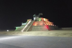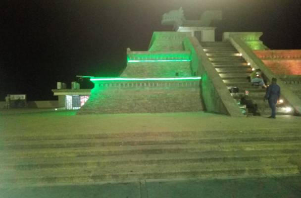 El Director de Alumbrado Público, Enrique Villegas García comentó, que por instrucciones del Presidente Municipal, en la réplica del monumento prehispánico, se colocó iluminación con tonalidades roja, blanco y verde.
