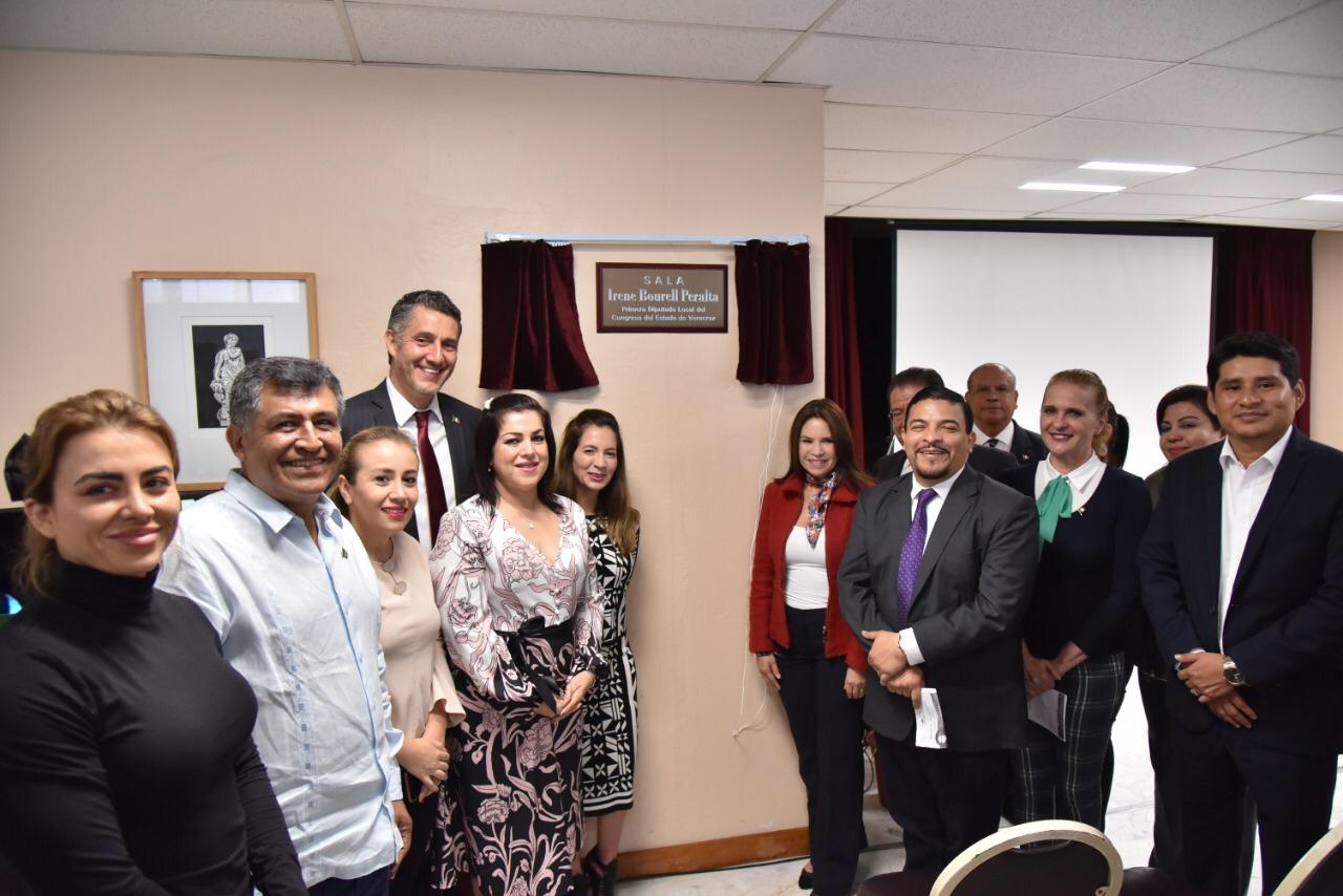 Qué mejor nombre, destacó Mendoza Madrigal, que el de Irene Bourell Peralta, quién fue la primer diputada local electa en la XLIV Legislatura Local, en el período de 1956 a 1959 y también la primera Diputada Federal por el Estado de Veracruz, siendo además la primer representante de la entidad en formar parte de la Mesa Directiva de la Cámara de Diputados Federal.