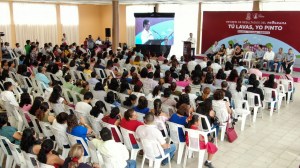 Beneficiando a 51 planteles, y a una población escolar de 7 mil 578 alumnos y 413 profesores, fue como concluyó el Programa “Tú Lavas, Yo Pinto”, ejecutado por el Gobierno Municipal con una inversión de 2 millones 800 mil pesos y coordinado por la Regidora Segunda, Eusebia Cortés Pérez.