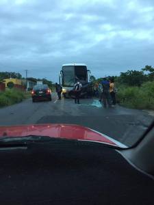 El choque del camión de autobuses contra el vocho fue en la carretera transístmica por Jáltipan, a la altura de la gasera El Gallito por el Motel Loma Bonita, cerca del tramo conocido como El Porvenir.