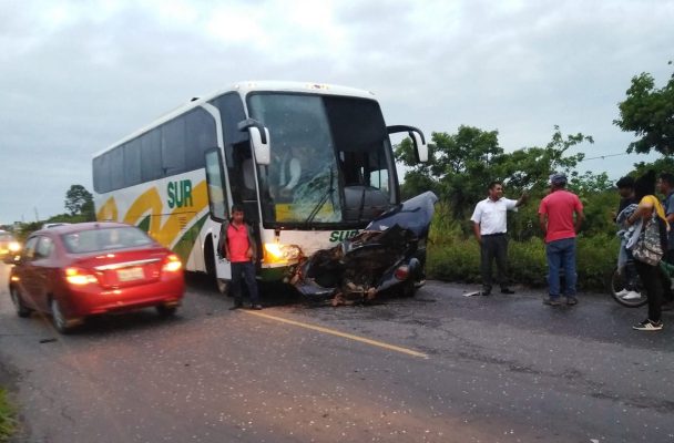 Durante esta mañana de miércoles, se registró un trágico accidente en la carretera transístmica entre Jáltipan y Cosoleacaque, luego que un camión de pasajeros de la línea SUR embistiera a un volkswagen Sedán color azul cuya tripulante murió al instante.