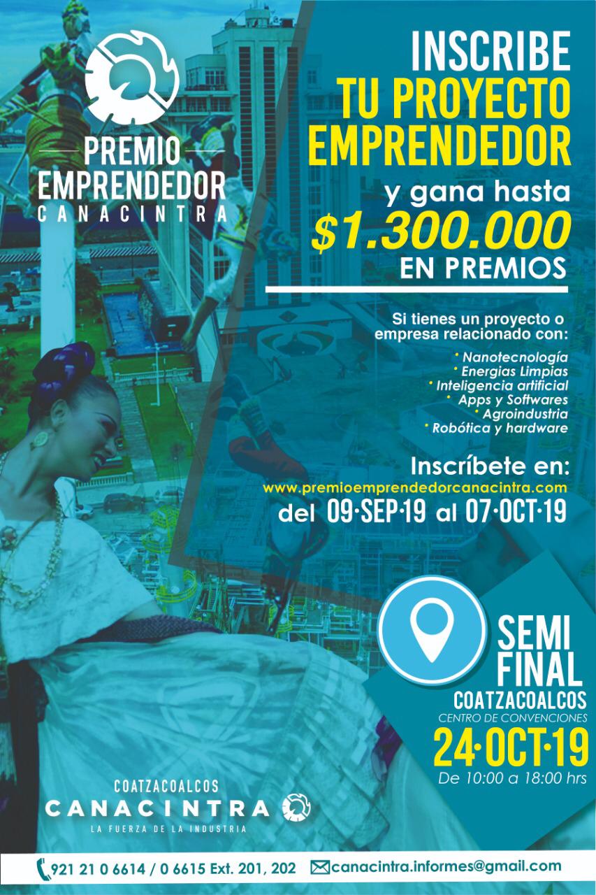Con una bolsa de premios a nivel nacional de un millón 300 mil pesos integrantes de la Cámara Nacional de Comercio delegación Coatzacoalcos, convocaron a los jóvenes de la región a participar en el premio emprendedor Canacintra que tendrá su semifinal el próximo 24 de octubre.