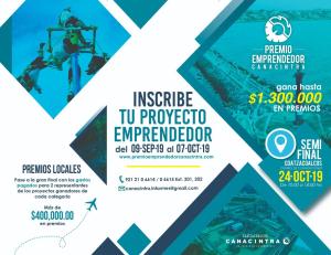 Las inscripciones se llevarán a cabo de manera gratuita del 9 de septiembre al 7 de octubre, en la página http://www.premioemprendedorcanacitra.com.