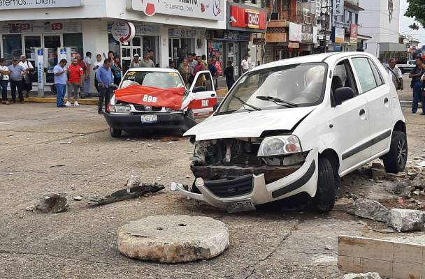 Dos personas resultaron lesionadas durante un accidente automovilístico poco antes del mediodía en el cruce de Llave y Carranza, en el centro de Coatzacoalcos.