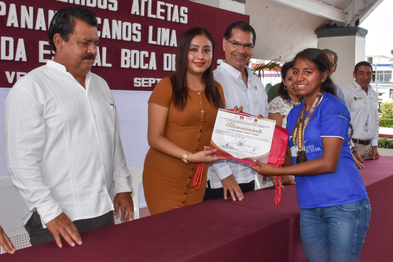 Autoridades municipales de Coatzacoalcos, encabezadas por el Alcalde Víctor Manuel Carranza Rolsaldo en compañía de la Diputada Federal Tania Cruz Santos y el coordinador del Instituto Veracruzano del Deporte en la zona sur, Daviano Avilés Sánchez, reconocieron a los atletas que participaron en los juegos Parapanamericanos en Lima y Paralimpiada Estatal Boca del Río 2019