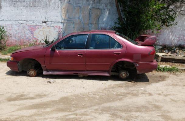 Por otra parte, en la calle Petirrojo de la colonia Santa Isabel, detectaron un vehículo sin llantas, Nissan Sentra, modelo 1995, tipo sedán, color rojo, placas YGL-51-01 del estado, número de serie 1N4AB41D9SC701327, aparentemente abandonado.