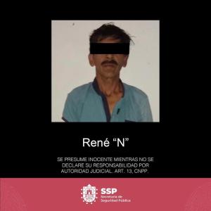 La Secretaría de Seguridad Pública (SSP), a través de elementos de Fuerza Civil, capturó a René “N” por presuntos delitos contra la salud; además aseguró diez bolsas de hierba verde parecida a la marihuana y un automóvil.