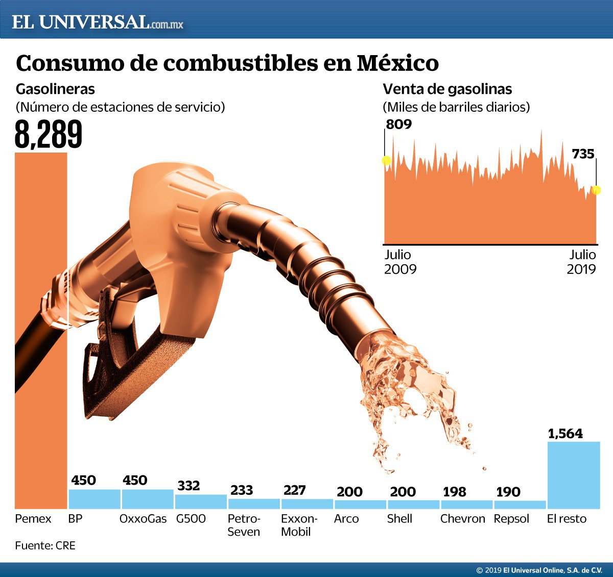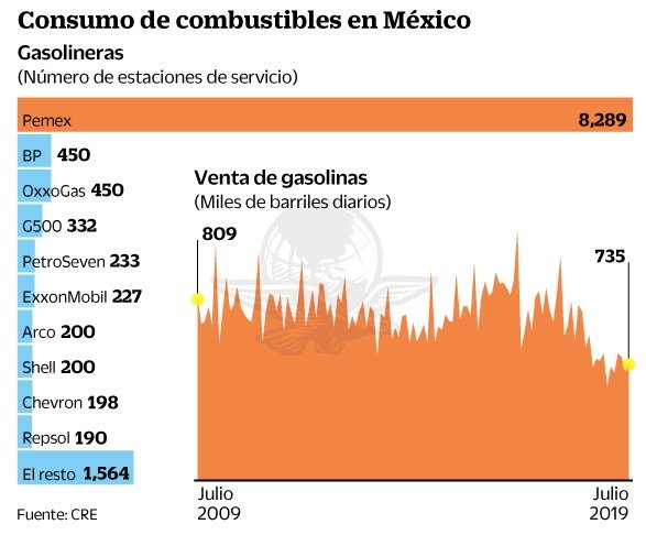 Con ello, la petrolera no sólo tendrá injerencia en prácticamente siete de cada 10 estaciones de servicio que operan en el país, sino que seguirá siendo la mayor distribuidora de combustibles automotores del país, tomando en cuenta que del consumo total estimado en 735.1 mil barriles diarios —dato a julio—, 685 mil barriles, 93.1%, sigue siendo suministrado por la empresa estatal.