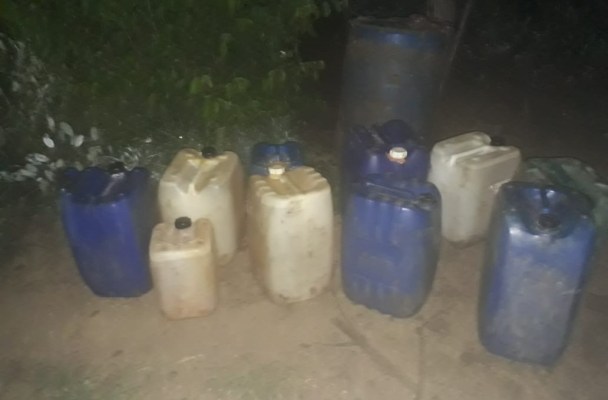 Por lo anterior, desarrollaron una inspección en el perímetro, donde localizaron diez bidones y un tambo conteniendo en su interior 480 litros de combustible.