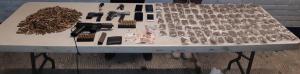También una garrafa blanca con 900 cartuchos calibre .223, 20 calibre 9 mm, 30 calibre .380 auto, 47 calibre .45 auto y dinero en efectivo; además, un bolso negro con 110 dosis de marihuana y cuatro teléfonos celulares de distintas marcas, por lo que fueron puestos a disposición de las autoridades competentes.