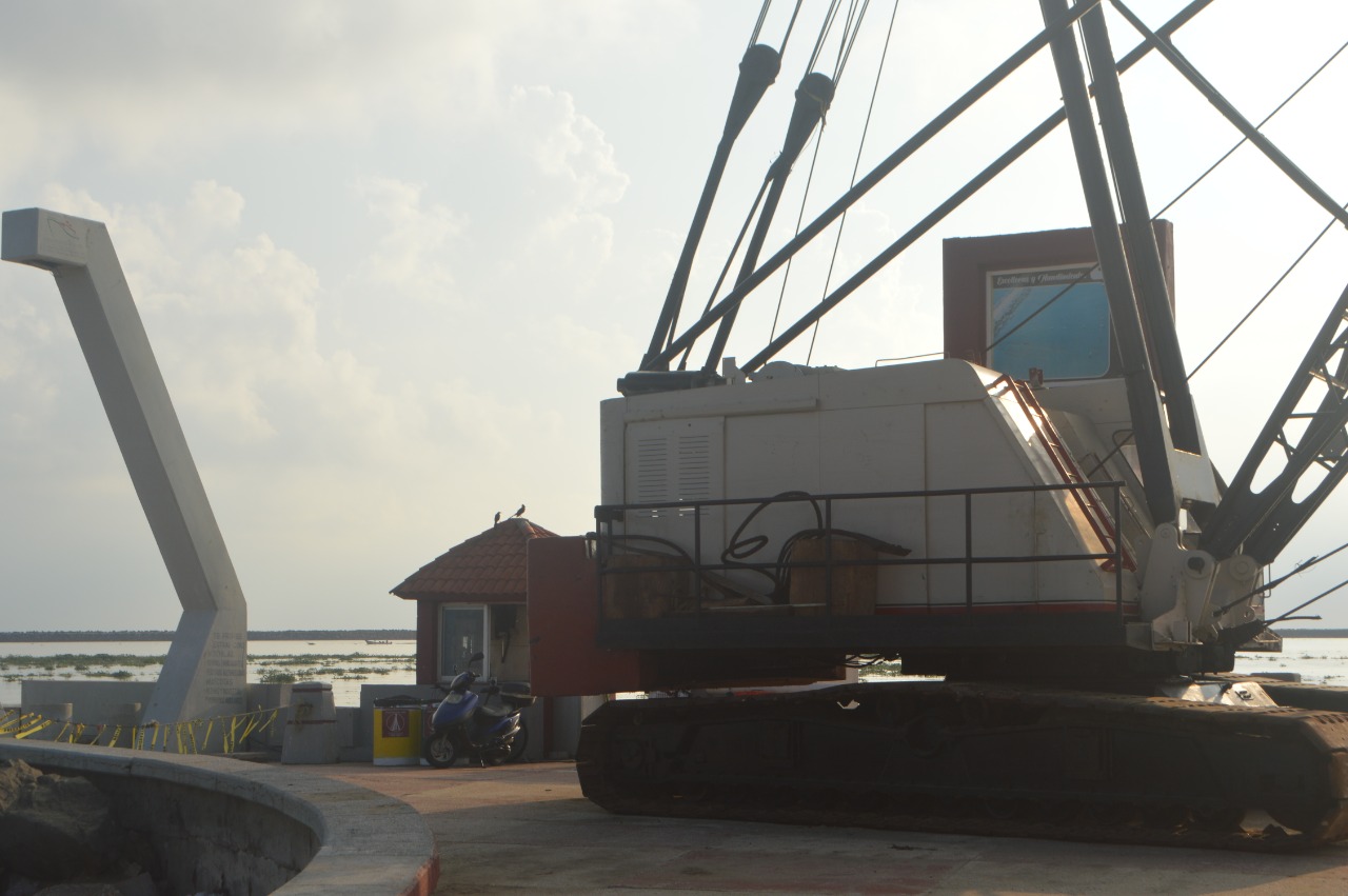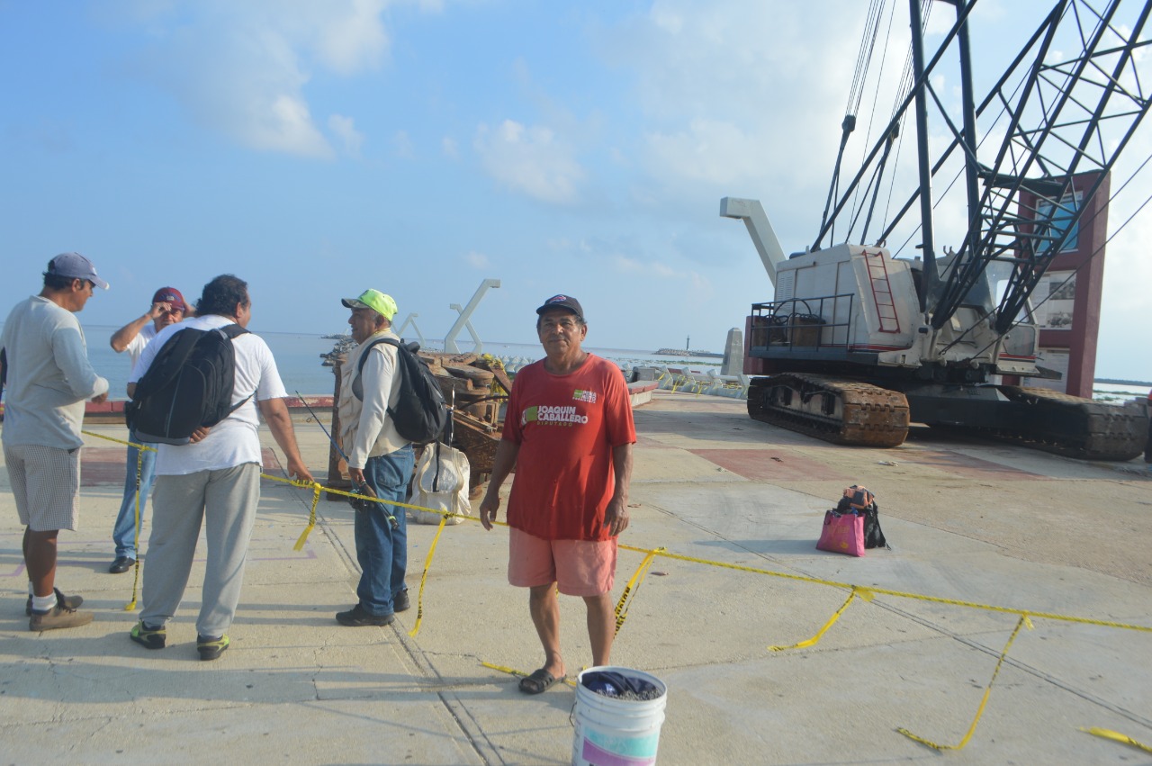 «No se imaginaron que el ancho de las escolleras es limitado, tiene 6.5 metros de ancho pero la grúa tiene 6.80 metros de ancho. ¿Cómo entra la grúa? Ya hizo destrozos en el pavimento, ¿ahora cómo va entrar a los tramos donde están las luminarias? Las va a golpear», criticó el pescador Domingo Gutiérrez Cetina.