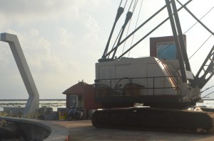 Las empresas de Nuevo León ni siquiera supieron medir bien los tamaños de la máquina para cargar tétrapodos y ponerlos como reforzamiento en las Escolleras ya que la súper grúa simplemente no cabe en el canal.