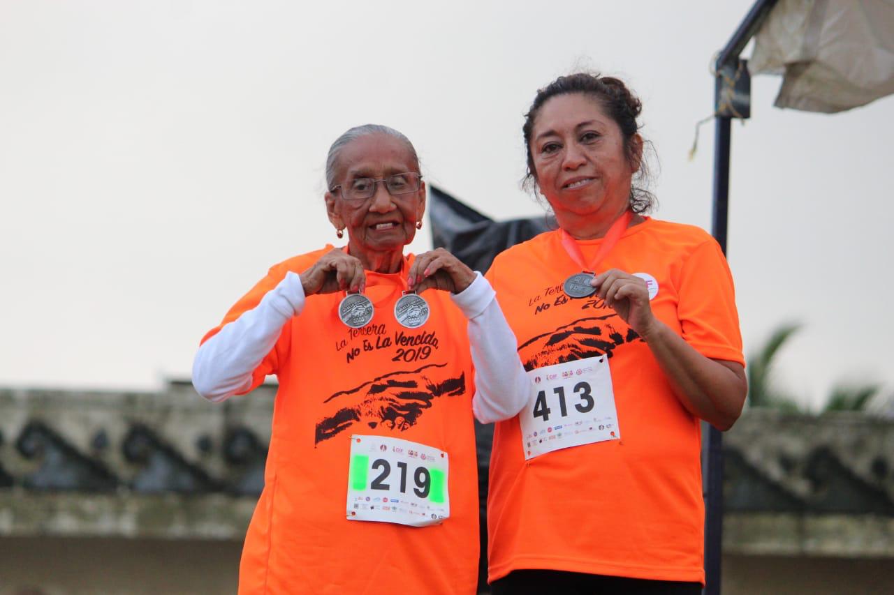 Bajo el lema ‘’La Tercera No Es La Vencida”, el Voluntariado perteneciente al Sistema DIF Coatzacoalcos que preside Lucila Aguilar Manjarrez, desarrolló esta mañana con gran éxito la Primera “Carrera y Caminata INAPAM 2019” ante la presencia de más de 500 competidores, teniendo como pista el Malecón Costero.