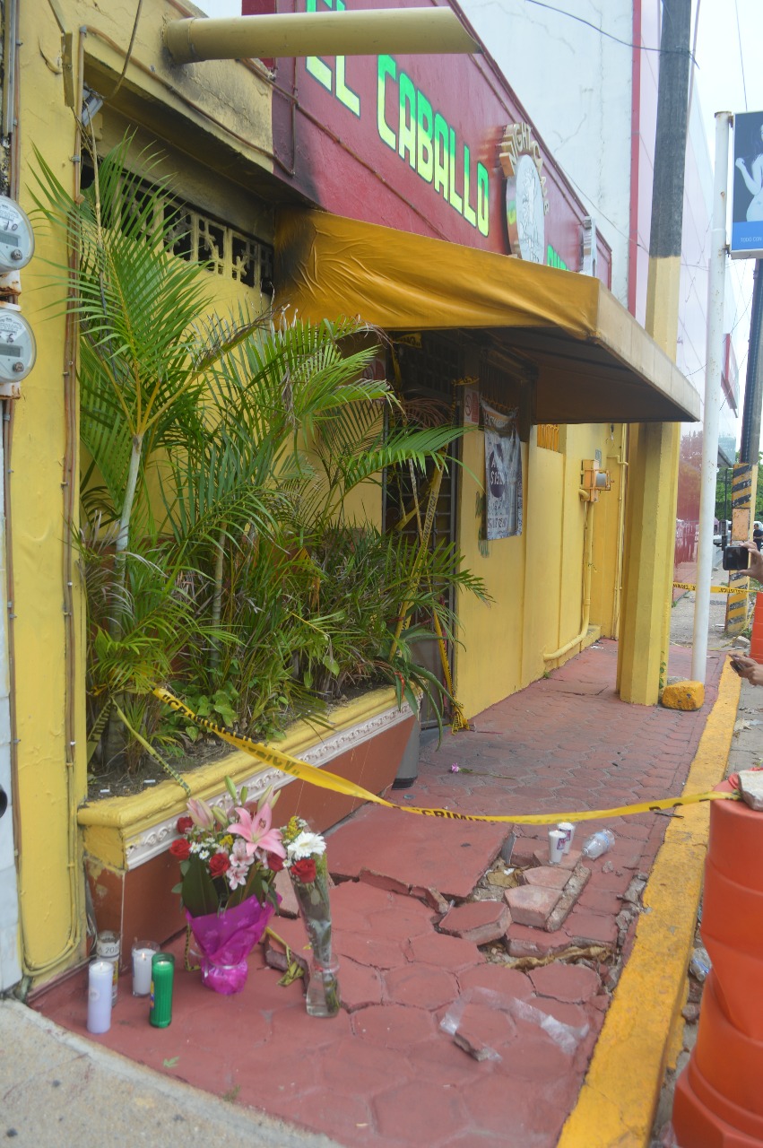 A un mes del atentado al Bar Caballo Blanco de Coatzacoalcos en el que perdieron la vida 31 personas por un incendio provocado, familiares de las víctimas dejaron hoy ofrendas florales y veladoras en el lugar del incidente.