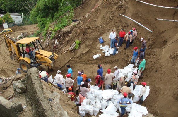 Ponen costalillas para evitar más deslaves.