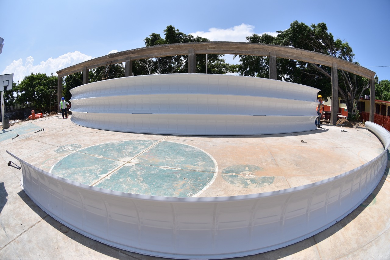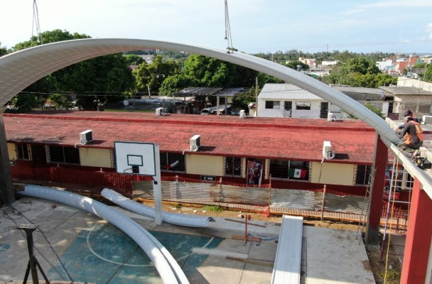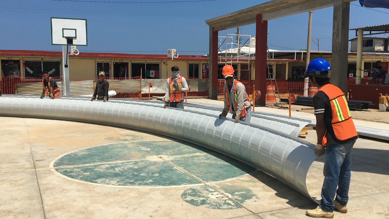 • Esta obra que beneficia a 600 alumnos, resistirá vientos de hasta 150 kilómetros por hora y podría tener una vida útil de entre 10 a 15 años