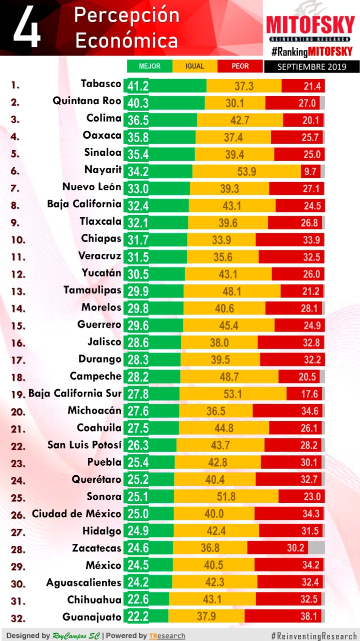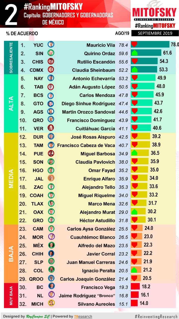 – Ranking Mitofsky de Gobernadoras y Gobernadores señala que el titular del Ejecutivo ostenta una alta aprobación ciudadana y la administración a su cargo uno de los mejores índices de honestidad.