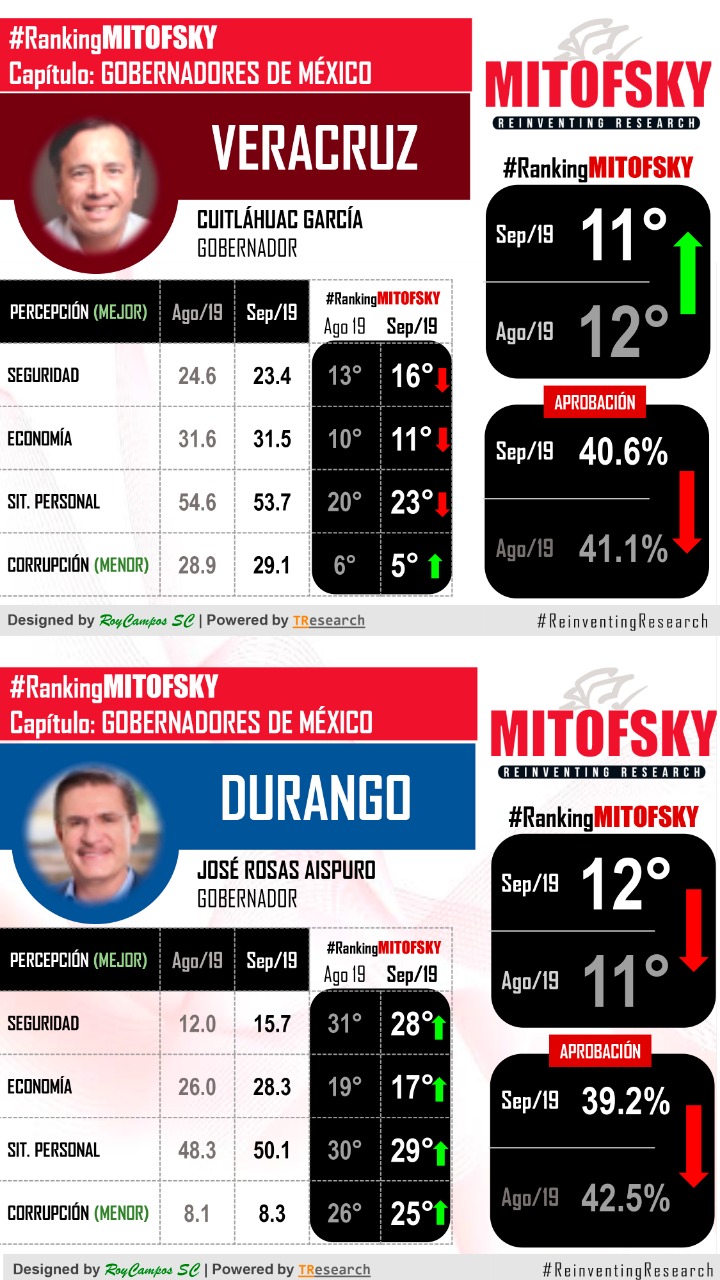 Lo anterior, en relación a los datos aportados por el Ranking Mitofsky de Gobernadoras y Gobernadores de México Septiembre, donde se destaca que las y los veracruzanos colocan al mandatario en el décimo primer lugar de aprobación a nivel nacional, escalando un peldaño respecto del mes anterior, con un 40.6% de opiniones positivas.
