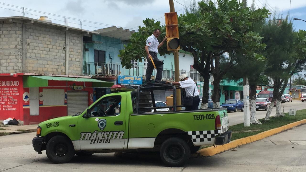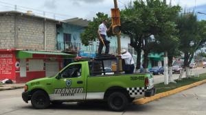 Rehabilita Tránsito del Estado, semáforos en Nanchital