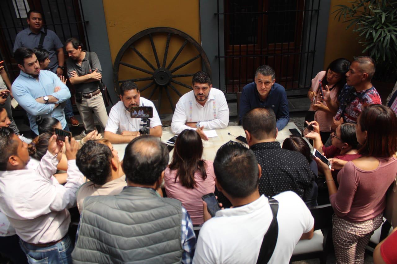 El legislador de MORENA acompañó al secretario de Educación de Veracruz, Zenyazen Escobar García y al regidor Ángel Etiem Jiménez, a rueda de prensa dada este domingo en el centro de la ciudad, donde se informó del incumplimiento de la Presidenta Municipal de Córdoba, de aportar el terreno mínimo de dos hectáreas, para la construcción del nuevo plantel CONALEP.
