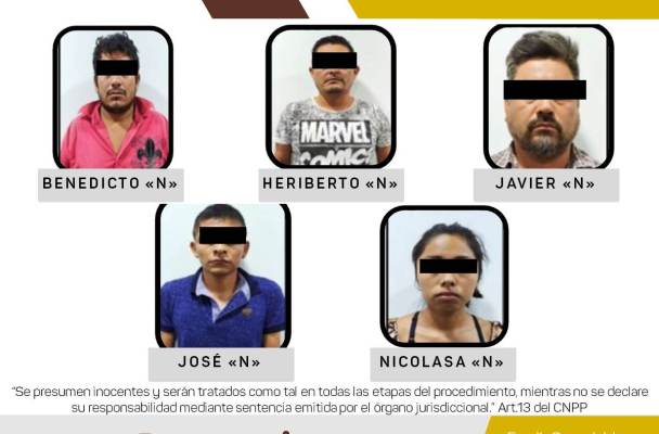 El pasado 14 de octubre del año en curso, elementos policiacos de Investigación adscritos a la Unidad Especializada en Combate al Secuestro (UECS), con destacamento en Xalapa, en operativo conjunto con la Secretaría de seguridad Pública (SSP), lograron la detención de Heriberto “N”, Nicolasa “N”, José “N”, Benedicto “N” y Javier “N”.