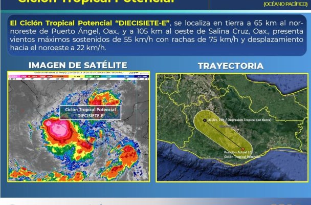 En su aviso de las 01:00 horas de este miércoles, el organismo indicó que el meteoro se ubicaba a esa hora a 45 kilómetros al este-sureste de Coatzacoalcos, Veracruz.