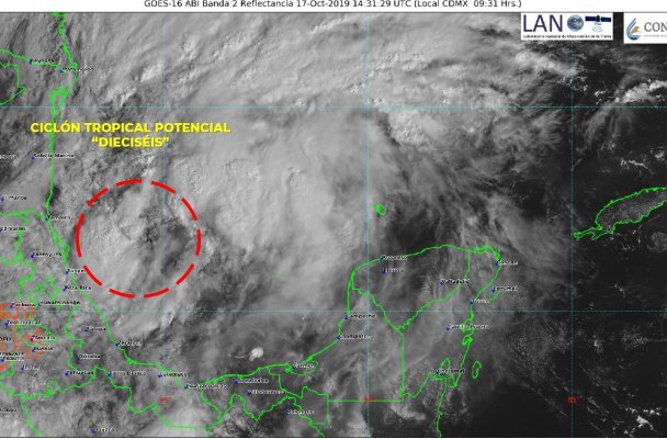 En un comunicado que difundir a través de sus redes sociales la dependencia señaló que a las 10:00 horas, tiempo del centro de México, en el Golfo de México se formó el Ciclón Tropical Potencial 16; se localizó a 190 kilómetros (km) al este-noreste de Cabo Rojo, Veracruz, y a 255 al este de Tampico, Tamaulipas, con vientos máximos sostenidos de 55 kilómetros por hora (km/h), rachas de 75 km/h y desplazamiento al norte a 13 km/h.