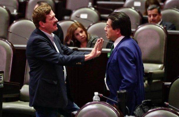 Los legisladores Carlos Romero Hicks (PAN) y Mario Delgado (Morena), durante la sesión de este martes 22 de octubre de 2019 en la Cámara de Diputados.