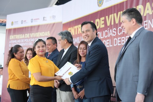 Entrega Gobernador Cuitláhuac García casas a familiares de policías caídos en cumplimiento de su deber