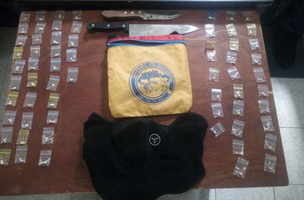 Esta acción se llevó a cabo al efectuar recorridos de persuasión y disuasión en la ciudad de Coatzacoalcos, Veracruz, donde elementos de la Armada de México, al realizar revisión precautoria a Adolfo N y Fernando N, quienes se transportaban a bordo de un vehículo tipo motocicleta, localizaron entre sus pertenencias aproximadamente 63 dosis de presunta droga con características similares a la piedra, dos cuchillos, dos mochilas y un pasamontañas.
