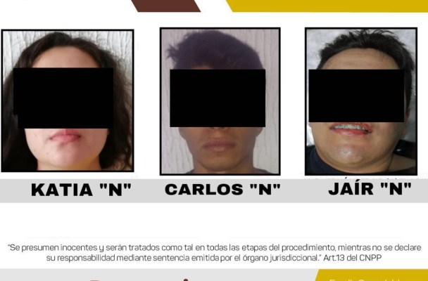 En el operativo, también se consiguió la detención de tres presuntos responsables del delito de secuestro Carlos Uriel “N”, Katia Elizabeth “N” y Jair “N”.