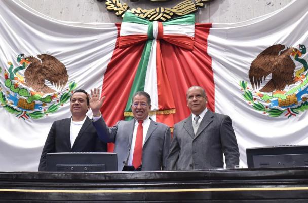 Ante los integrantes de la Diputación Permanente, reiteró su agradecimiento a todos las y los diputados, de manera especial a los coordinadores de los grupos legislativos, y reconoció el trabajo político y liderazgo del presidente de la Junta de Coordinación Política (Jucopo) y coordinador del Grupo Legislativo de Morena, diputado Juan Javier Gómez y Cazarín.