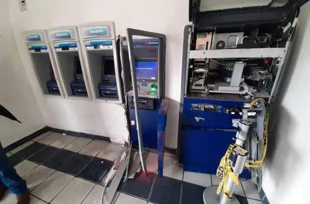 Uno de los 5 cajeros automáticos ubicados en la sucursal Banamex en el municipio de Nanchital registró signos de robo al estar prácticamente roto y con intento de sabotaje.
