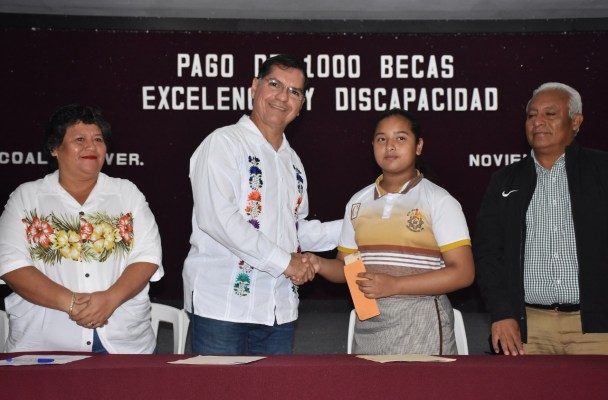 Por su parte, el Alcalde apuntó: “en Coatzacoalcos suceden también cosas bellas y entre ellas el apoyo a la educación, que se ha brindado a través del mejoramiento de la infraestructura escolar, ahora con el pago de estas becas a la excelencia académicas y con todas las acciones de impulso a la educación que se ha estructurado desde el Gobierno Municipal”.