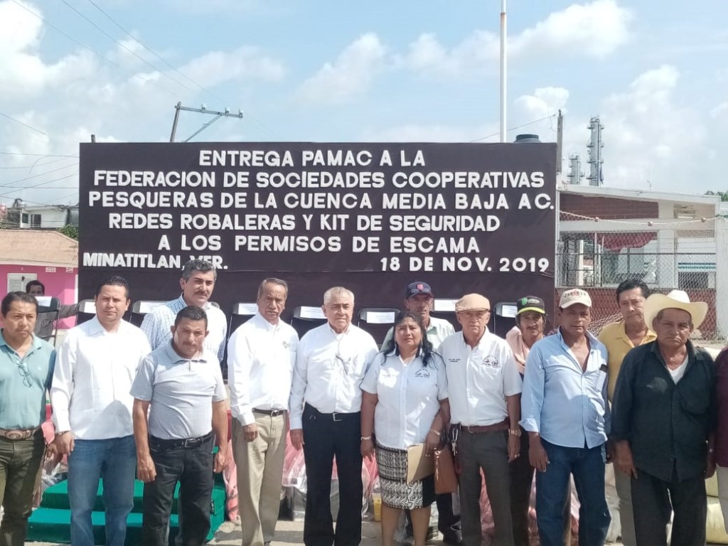 Se entregaron 300 kits de seguridad que incluían chalecos, impermeables, luces, lámparas, GPS, 376 redes ribakeras, beneficiando con ello a más de 700 pescadores de 12 sociedades cooperativas de los municipios de Ixhuatlán del Sureste, Agua Dulce, Coatzacoalcos, Cosoleacaque y Minatitlán.
