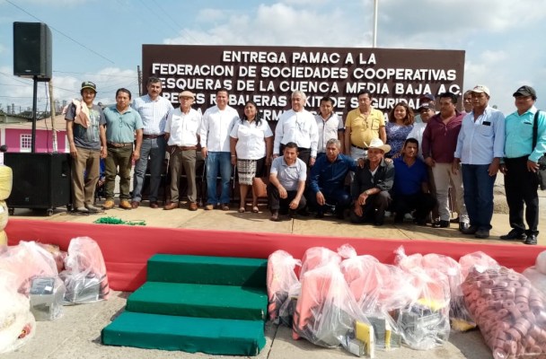 El Programa de Apoyo a la Comunidad y Medio Ambiente (PACMA), que desarrolla Petróleos Mexicanos en los municipios en los que opera PEMEX Exploración y Producción (PEP), realizó la entrega de apoyos por el orden de los 9 millones 600 mil pesos en artes de pesca y kit de seguridad a pescadores de la zona sur de Veracruz.
