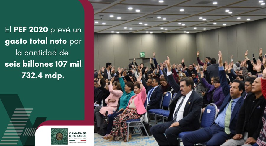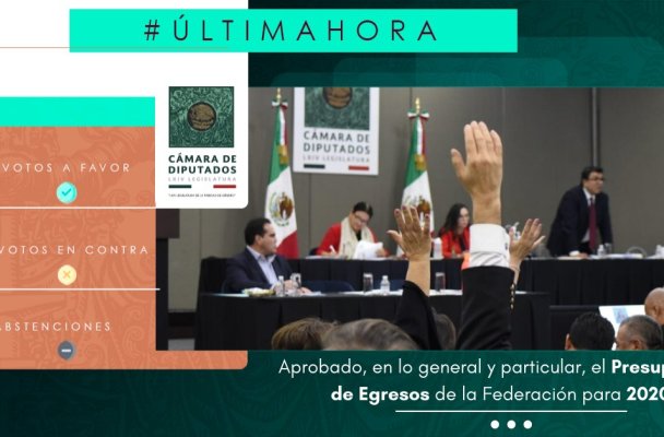 El pleno de la Cámara de diputados aprobó por mayoría de 321 votos a favor, 78 en contra y ninguna abstención el Presupuesto de Egresos de la Federación 2020 que considera un gasto de seis billones 107 mil 732.4 millones de pesos.