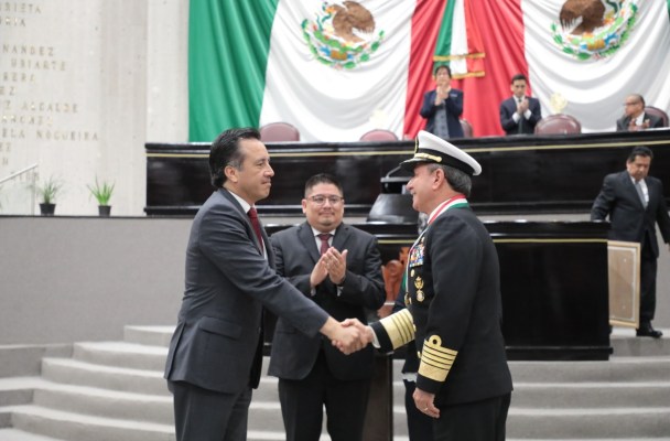 Por su servicio a la nación, compromiso social, defensa del Estado de Derecho y la soberanía, el secretario de Marina-Armada de México (SEMAR), almirante José Rafael Ojeda Durán, recibió del gobernador Cuitláhuac García Jiménez la medalla “Adolfo Ruiz Cortines”, máxima distinción otorgada por la entidad a quienes contribuyen en su ámbito al engrandecimiento de Veracruz.
