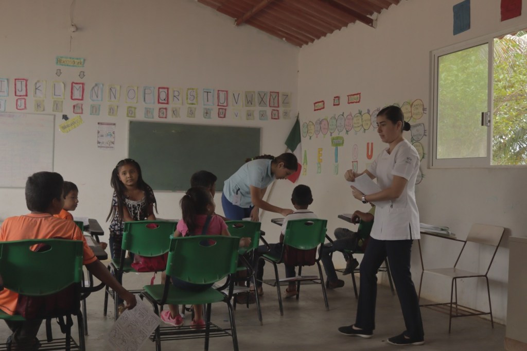 En esta comunidad rural, se efectuaron también pláticas de nutrición, en la escuela se hicieron practicas recreativas con los niños, donde indicaciones sobre la higiene personal y dental.