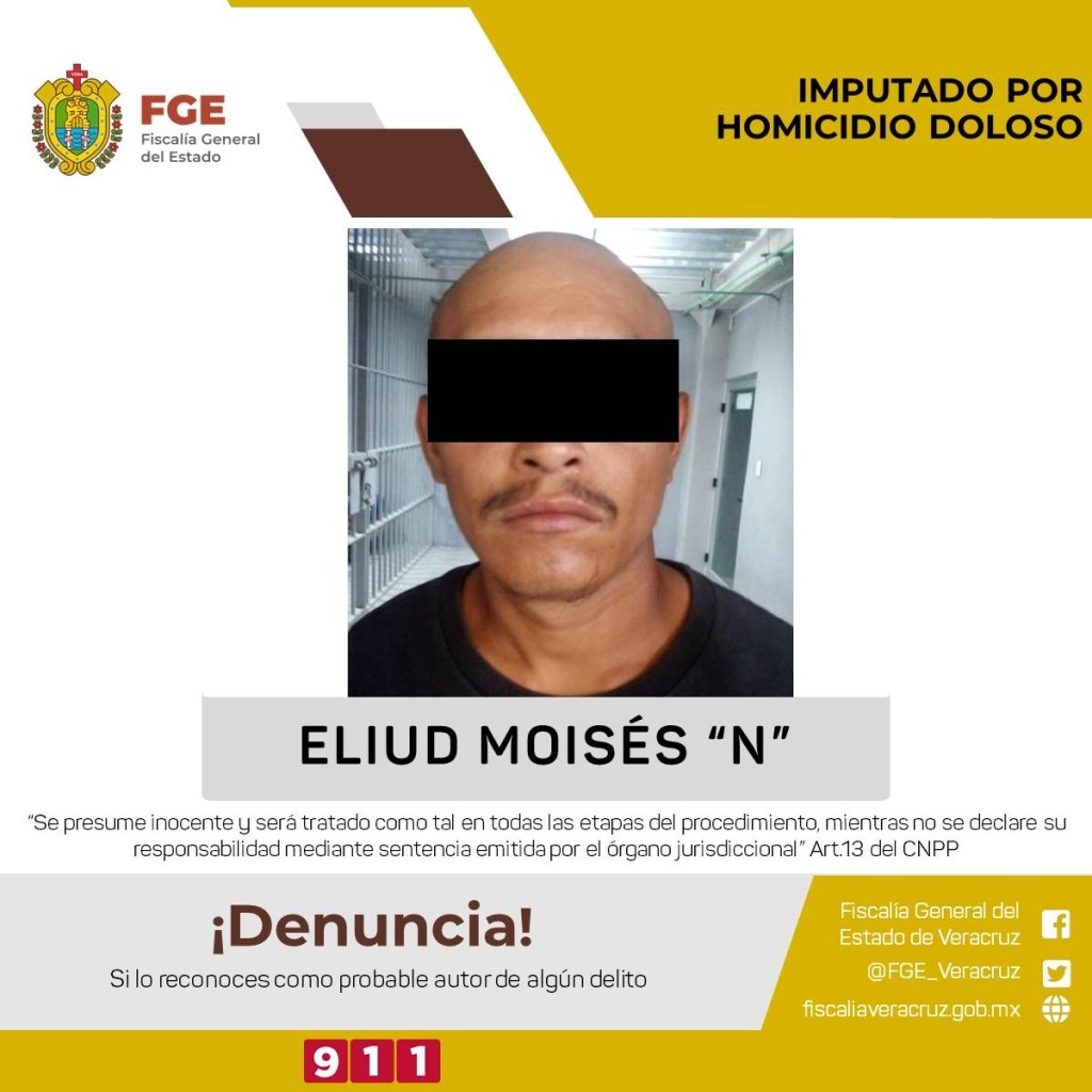 Mediante la aportación de datos de pruebas fehacientes, la Fiscalía Regional de la zona sur-Coatzacoalcos, obtuvo en audiencia inicial la procedencia de imputación en contra de Eliud Moisés “N”, por su probable responsabilidad en el delito de homicidio doloso.