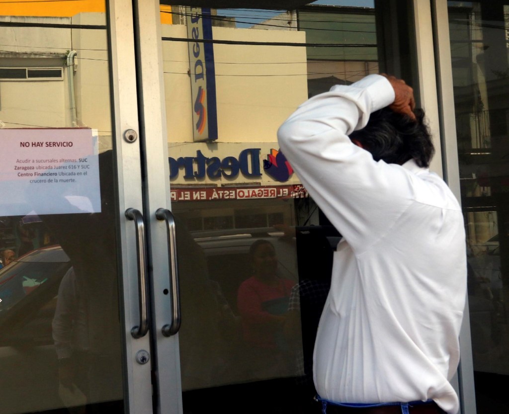 Durante los movimientos bancarios, se había colocado una cartulina afuera del banco, donde se avisaba que estaban fuera de servicio.