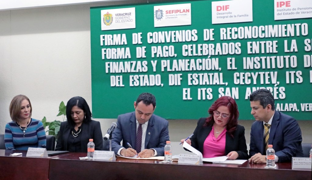 Con el objetivo de fortalecer el sistema pensionario de Veracruz, la Secretaría de Finanzas y Planeación (SEFIPLAN) y el Instituto de Pensiones del Estado (IPE) firmaron convenios para atender los adeudos por más de 173 millones de pesos con el DIF Estatal, la Ciudad Asistencial CONECALLI, el Colegio de Estudios Científicos y Tecnológicos del Estado de Veracruz (CECyTEV) y los Tecnológicos Superiores de Misantla y San Andrés Tuxtla.