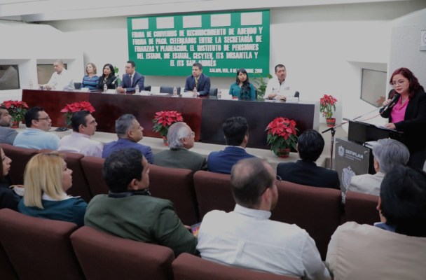 Signaron los documentos el subsecretario de Egresos de la SEFIPLAN, Pabel Pazos Rincón; la directora Jurídica y Consultiva del DIF, Yolanda Orduña Arroyo; la subdirectora del CONECALLI, María Leonor Emma Kuri Galván; la directora General del CECyTEV, Ruth Jacqueline Rosa Cruz; y los titulares de los Tecnológicos de Misantla y San Andrés, José Roberto Arenas Martínez y Jorge Antonio Velarde Inclán, respectivamente.