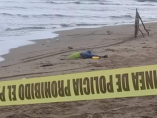 La víctima vestía pantalón de mezclilla color azul y playera color verde limón y estaba semi enterrado en la playa por las fuerzas del oleaje.