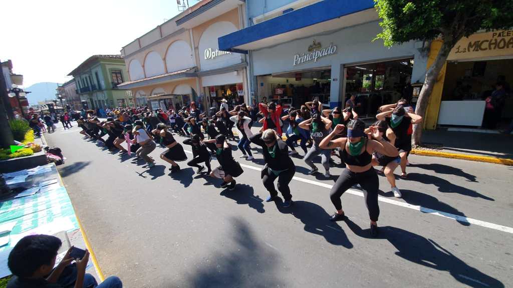 Más de un centenar de mujeres participó en el performance denominado «Un violador en tu camino» que tuvo como lugar la calle «Francisco I. Madero» a un costado de la catedral San Miguel Arcángel de Orizaba.